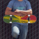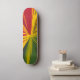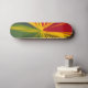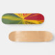 Bata nas ruas em estilo com este skate inspirado no reggae, com pinceladas de mão livre em vermelho, ouro e verde. Um design ousado e vibrante que vira a cabeça e expressa sua energia única.