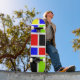 Um desenho abstrato geométrico colorido de duro, talvez um pouco parecido com Mondrain, embora diferente. Um design de alta resolução criado de um original gráfico vetorial.