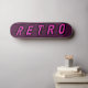 Uma fotografia de um sinal de conselho vintage peg visto num mercado de pulgas mostrando a palavra "Retro", a imagem foi tratada com um alto contraste e efeito de ponto de jornal de meio tom, o que lhe dá um ousado efeito de ressonância escolar.