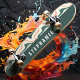 Skate Retro Moderno, Rosa E Verde, Giro De Mármore Abstr
