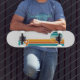 Retro vintage style sunset on extended horizontal stripe design with 89 (1989) typography in the style of the 1980s.