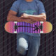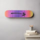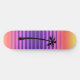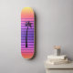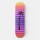 Listras horizontais em cores tropicais, sombreando de amarelo quente a belo roxo, com a silhueta de uma palmeira graciosa, cria um skate fab!