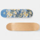 This skateboard features a retro hibiscus flower, tropical palm trees, and blue pattern that's reminiscent of classic Hawaii or Tahiti, almost like a tropical shirt pattern. Your monogram initial appears in yellow against a blue background with simulated brushed metal look. This nostalgic beach style design might remind you of tropical beaches and relaxing waves whenever you see it.