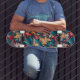 Skate Rosas vermelhas de vindima e padrão floral lilás