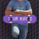 Skateboard completo com um vibrante design roxo e espaço para nome personalizável. Perfeito para skate de rua, manobras ou como um presente estiloso e personalizado para entusiastas de skate.