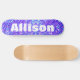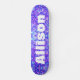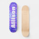 Coloque um sorriso no rosto de uma criança com este skate de garotas personalizadas, Roxo Faux Glitter! Ele foi projetado com um fundo brilhante de falso roxo brilhante e nome personalizado no centro em caracteres negros de blocos brancos. Clique na opção personalizar e siga o prompt.
