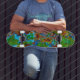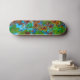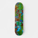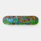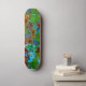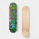 Colorful rustic metal surface pattern with a vivid cracked peeling paint patina. An abstract grunge texture photo of an artistic oxidised weathered metallic surface. Beauty in decay, this flashback shaped skateboard is a gift idea which has a story to tell.