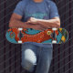 Um baralho de skate para um entusiasta da natureza, com duas salamandras sorridentes. Uma é uma salamandra vermelha (surpresa!) e a outra é uma salamandra de incêndio. Não literalmente entrelaçado, mas formando uma forma agradável (uma versão menor do design de cheio é inserida em uma extremidade do conselho). Fatos da salamandra: as salamandras vermelhas são da América do Norte, as salamandras de incêndio da Europa continental e das regiões circundantes.