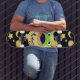 Design de skate moderno, fofo, legal e divertido. Este design apresenta uma face de sapo surpreendida com um padrão espacial de sol luar e estrelas com nome personalizado. Perfeito para crianças na época de férias, ocasiões especiais como aniversários, reuniões familiares ou como um "presente do dia a dia"