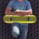 Disco de skate stripe verificado com cores totalmente personalizáveis. Clique em personalizar para alterar a cor de fundo. Para alterar a cor da faixa marcada, clique em personalizar, selecione a camada "Verificado1.2" e altere a cor do preenchimento. Personalize-o substituindo o texto do marcador de posição. Para obter mais opções, como alterar a fonte e seu tamanho/cor ou o espaçamento entre letras, clique no botão "Personalizar". *Observe que a Marca d'água do Zazzle que aparece na visualização de zoom NÃO aparecerá no produto impresso final. © Rosewood e Citrus