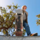 Uma mulher guerreira fica em uma colina de erva olhando para o mar. O sol está baixo no céu, lançando as nuvens em vermelho e laranja. Esta lutadora, armada com escudo e lança, e vestindo uma camisa de correio para armadura, parece pronta para lidar com o que acabou de aparecer no horizonte: um navio Viking.