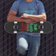 Dancing the latest dance craze, the side hustle, helps teens AND adults earn money on the side on top of their incomes! Plus, unlike grind dancing, the former group WON'T BE sent to the principal's office of get suspensions because it's SO age-appropriate! The phrase on the underside of the skateboards, "side hustle," is in neon green text. Oh, and leave the grinding to the rails or edges at skate parks, please!