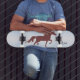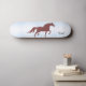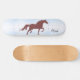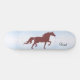Silhueta de cavalo marrom elegante e caligrafia em skate azul-claro. O texto pode ser personalizado.