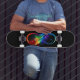 Símbolo infinito desenhado artificialmente com uma bela pena arco-íris sobre fundo branco. Tatuagem.