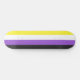 Essa design apresenta a bandeira do orgulho não-binário, que representa pessoas que se identificam como não-binárias (também não-binárias soletradas) ou gengibres, envolvendo um espectro de identidades de gênero que não são exclusivamente masculina ou feminina, mas estão fora do binário de gênero. As identidades não-binárias podem ser abrangidas pelo guarda-chuva transgênero, uma vez que muitas pessoas não-binárias se identificam com um gênero diferente de sua biologia. Um termo informal para não binário é "enby", que vem da abreviação NB. As pessoas não binárias podem identificar-se como tendo dois ou mais sexos, sem sexo, se movendo entre sexos, tendo uma identidade de gênero flutuante e sendo do terceiro sexo ou de outro sexo.