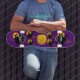 Peça este tipo de skate e skate do Dia das Bruxas em volta do seu truque de vizinhança ou tratamento. Este skate é personalizável, portanto você pode mudar e escolher o tamanho e o tipo do skate que você precisa e deseja. Quer você queira mini, velha escola, muito grande ou médio, e mais você tem sua escolha usando a ferramenta personalizar. Este skate tem imagens de bruxas voando pelo céu noturno e um Jack 'O Lanterna no meio. Ele também se parece com a lua. O fundo é roxo. Além de um design Holloween divertido, estes skates são os melhores! São feitos com 7 níveis de maple norte-americano feito diferentemente dos skates típicos que são feitos apenas com três. Este não vai desmoronar-se em si nem vestir-se facilmente, se é que o é. Além disso, é completamente feita pelos americanos, com madeira de escolha na Califórnia! Há certas coisas que são mais bem feitas nos EUA, como os American Fender Strats e peças de aviões, na sua maioria, que provavelmente também incluem skates! Peça apenas o baralho para que você possa personalizá-lo com suas próprias rodas ou pedir os completos que vêm com as rodas e o caminhão. Feliz Holloween!