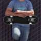 Skeleton hand, rock and roll, heavy metal, black skateboard
