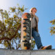 Skate Skyline de Manhattan no crepúsculo, imagem de New