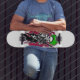 Skate Soldado da face do crânio com cabelo verde