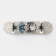 Este skate exclusivo apresenta fones de ouvido sorridentes de vista de crânio floral, colocados contra um fundo de rendas vintage. O design combina estilos de vassoura, hippie e gótico, criando um aspecto impressionante e elegante. Perfeito para aqueles que adoram combinar elementos escuros e florais com um toque de charme de safra.