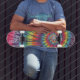 Um skate espiral incrível de tintura de gravata com um arco-íris de cores brilhantes único à medida que chegam! As espirais giratórias das cores são triviais e atraem sua mente para olhar mais de perto!