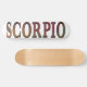 Scorpio White Skateboard Deck By TheFabricSeal é uma combinação legal de scorpion e Scorpio lettering. A inscrição Scorpio com fundo branco é de nosso design de trabalho de arte para o Sinal Zodiac Escorpião que também inclui um desenho animado de escorpião de sobremesa. Este legal Skateboard Deck é uma ideia de presente de excelente para um Escorpião Festa de aniversário. Scorpio representa o oitavo sinal astrológico do zodíaco. O sol transita esse sinal em média de 23 de outubro a 22 de novembro. Alguém sob a influência de Scorpio pode ser chamado Scorpio ou Scorpion. Arte do sudoeste influencia e cores terríveis tons de laranja, amarelo, vermelho, cobre e azul e verde turquesa. Obrigado por visitar e comprar no TheFabricSeal | Zazzle.