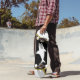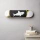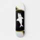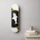 Andar de skate com tubarão branco sobre fundo branco e preto. A design inclui linhas que têm um aspecto brilhante em ouro. (O brilho é uma imagem simulada e não uma folga real)
