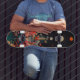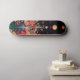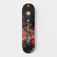 Um skate espacial único com um foguete voa através do céu, com três luas e estrelas acima dele. O rio está rodeado de flores em flor de cheio. Pássaros coloridos voam pelo espaço. Um grande número de peões vermelhos flutuam na água. Detalhes de alta definição, surrealismo, arte digital, alta resolução, obra-prima no estilo da arte digital