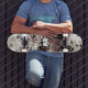 Um skate de na moda e moda com a beleza dinâmica da pintura em negrito com pintura em cores quentes de queda. Esta vibrante arte moderna mostra surpresas impressionantes de tons de cor suja, capturando a essência do outono. Personalize o monograma e faça deste skate o melhor presente para seus amigos ou família.