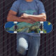 Este é um skate com uma tartaruga de mar verde na parte inferior como você pode ver que pode fazer seu passeio mais popular do que ele é.