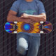 A pena indiana projetou o skate com uma exposição colorida