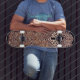 Design de skate inspirado em escudos tribais antigos da tribo Maori na Nova Guiné.