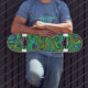 Atravesse as ondas da criatividade com o nosso traiçoeiro andar de skate de arte verde, adornada com padrões legal e coloridos. Opte pelo andar sozinho ou vá para o skate completo com caminhões e rodas para uma experiência pronta a rolar. Ideal para skatistas que buscam combinar arte e ação, este skate promete uma carona que é suave e na moda.