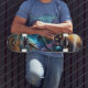 Este design de skate, intitulado "Gears Galáctico", molda a beleza inspiradora do sistema solar com a intrincada mecânica do steampunk. O convés apresenta uma representação vibrante de planetas e estrelas, integrados perfeitamente com engrenagens, engrenagens e elementos mecânicos que lembram a maquinaria da era vitoriana. A design apela para aqueles fascinados tanto pelos mistérios do espaço quanto pela complexidade artística da engenharia steampunk.