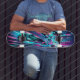 "Mergulhe no mundo de alto-octano do 'Neon Velocity: Cyberpunk Chase Skateboard Deck'. Esta design dá vida a uma emocionante perseguição de alta velocidade através de uma cidade ciberpunk iluminada por neon. Um carro elegante e futurista, iluminado com linhas brilhantes, pontes pelo trânsito e hologramas de neon, seguido de perto pelos drones policiais. As vibrantes luzes de néon e outdoors digitais da cidade aumentam o sentido de urgência e ação. Os azuis elétricos, pinks quentes e verdes de neon criam uma atmosfera dinâmica de velocidade e adrenalina