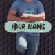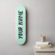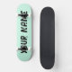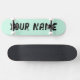 Deck de skate com design estético em verde pastel e espaço para nome personalizável. Perfeito para skate de rua, manobras ou como um presente personalizado estiloso e divertido para entusiastas de skate.