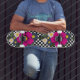 Checkered e Flowers Quer você esteja fazendo sorvetes no meio-cano ou 'kickflips' na rua, este conselho em forma de competição tem pop supremo! Nossos pavimentos são feitos de um mapa de rochas duros de melhor qualidade e com nosso processo de impressão de um tipo; você tem o melhor skate disponível no mundo.