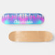 Tabuleiro azul de pingar brilhante com fundo legal fluorescente, néon rosa, roxo e azul claro. Personalize adicionando seu nome. Presente de skate de excelente para mulheres e meninas.