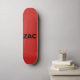 skate com o nome Zac em preto com fundo vermelho