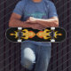 Vetor de chama em laranja vermelho e amarelo no skate preto.