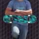 Skate Vistoso manchado de azul a ciano, manchas avermelh