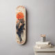 Esta design única de skate mostra uma sábia coruja agitada contra uma lua deslumbrante e feroz, capturando o misterioso fascínio da noite. Usando uma paleta de bege quente, laranja intenso e preto sombrio, este trabalho de arte desenhar inspira-se em posteres de viagens da década de 1950, trazendo uma mistura de nostalgia e beleza selvagem para a cena do skate. Ideal para skatistas que ressoam a temas de sabedoria, independência e espírito indomado da natureza, essa design incorpora a essência da força silenciosa e da observação. Perfeito para aqueles que buscam elegância e aventura.