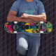 Este andar de skate capta a intensidade primitiva: o rosto de um lobo pintado em traçados de grafite de neon, com olhos ferozes e vibrantes manchas de cor. Misturas explosivas de energia bruta das ruas amarela, magenta e ciano. Ambas as extremidades apresentam texto personalizável para que você possa adicionar seu nome ou deixá-lo vazio. Perfeito para cavaleiros com espírito selvagem e coletores de edição limitada de arte skate.