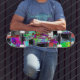 Ride with bold creativity using the Abstract Grid – Chromatic Disruption Skateboard. This expressive design features a dynamic digital collage of glitch-inspired brushstrokes, neon tones, and grayscale transitions arranged in a structured grid format. The vivid contrasts and layered textures transform a simple skateboard deck into a functional piece of modern art.
