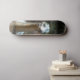 La patineta tiene un diseño peculiar y llamativo, representando la imagen de un aterrador monstruo acuático. Este monstruo está asociado con criaturas marinas mitológicas o fantásticas. El monstruo se encuentra en una laguna, sugiriendo un escenario en el que este inusual diseño genera un impacto visual único. La combinación de la forma de transporte urbano, como una patineta, con la representación de un monstruo acuático agrega un elemento de originalidad y creatividad al objeto, convirtiéndolo en una pieza distintiva y atractiva para aquellos que buscan algo fuera de lo común.