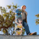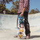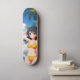 Skateboard de dessins animés japonais d'une jeune femme timide à la plage en maillot de bain.