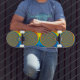 Um padrão de redemoinho multicolorido repetido em azul, laranja e amarelo. Um ótimo presente para adolescentes em aniversários e Natal .