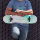 Personalize facilmente este skate colorido em um design abstrato de cor verde-verde-menta verde-preto moderno, com seu nome personalizado em uma fonte elegante de caligrafia. Adicione seu nome, escolha fonte, altere tamanho e posição, adicione clipart, fotos e formas.