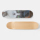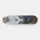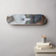 La patineta tiene un diseño específico, representando la imagen de un gato gris y blanco observando. Esto sugiere que la superficie de la patineta está decorada con la imagen de un gato de colores específicos, con detalles realistas que muestran al gato en una posición de observación. Este diseño no solo aporta un elemento estético a la patineta, sino que también le confiere una personalidad única al incorporar la figura de un gato en la temática visual.