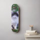 La patineta tiene un diseño específico inspirado en un gato de la raza Maine Coon de pelo largo. Esto sugiere que la superficie de la patineta presenta una ilustracion que representa características distintivas de un gato Maine Coon, como su pelaje largo y otros rasgos físicos característicos de esta raza, como orejas grandes y un cuerpo robusto. El diseño es colorido y detallado para capturar la apariencia única de un Maine Coon. En resumen, se trata de una patineta personalizada con un toque temático que destaca la belleza y singularidad de los gatos de la raza Maine Coon.